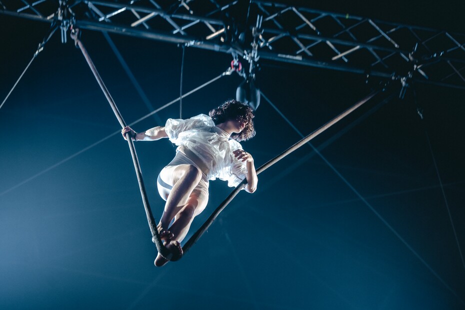 Na konci je číslo, kde se akrobatka Selma drží za jednu ruku na vzdušných popruzích a tělo vyšvihuje proti gravitaci. Nedávno mi říkala, že se zrovna učí nové věci, které si nemyslela, že by jako žena vůbec mohla dokázat. Miluju Lorenu na houpačce zvané cloud swing – během jejího čísla si občas lehám na matrace, na které se padá z pódia, někteří kolegové ji tam pozorují vždy. Stejně mě ale baví i chinese pole, na které cvičí Tino a mám ráda taky scénu, kde je Renato na trapéze a u toho hraje hyperpopová hudba. Ale stejně mě baví i žonglování a vlastně všechno.