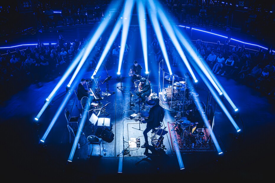 Trochu mi bylo taky líto, že statický formát akustického koncertu neumožnil pracovat s otáčivým publikem hravě. To, že se občas zdvihlo celé nebo po částech do výšky bylo v kombinaci s některými světelnými designy působivé, ale přestože se kapela za celou dobu nezastavila, pohybu v tom bylo vlastně málo.