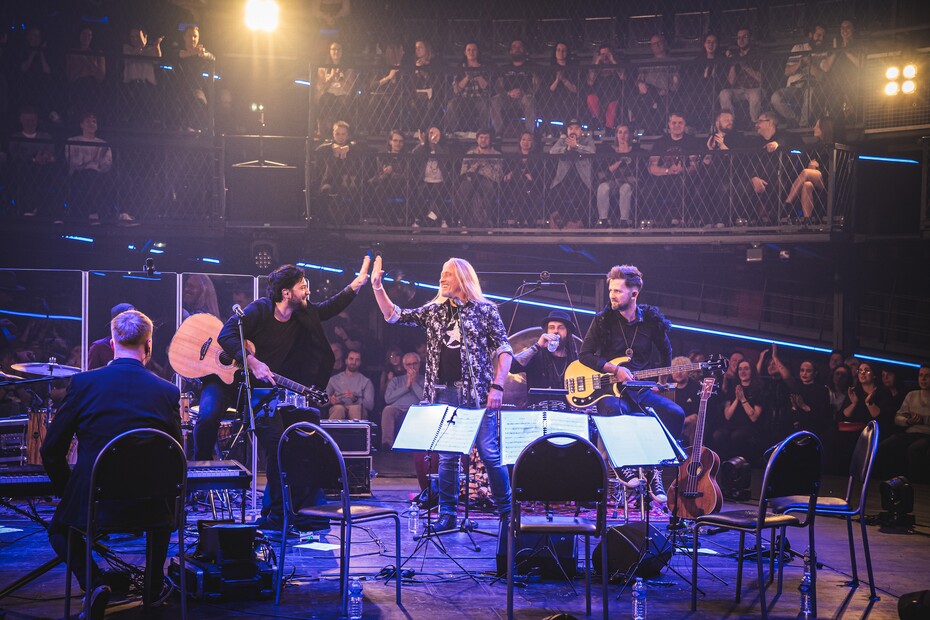 Otočné pódium je ve Spirále středobodem dění. Čtyřčlenná kapela na něm 29. října zahrála průřez víc než dvaceti let tvorby. Nejčastěji s ní byl na place klavírista Ondřej Potužník, v řadě písní skupinu doprovodil Corvus Quartet, kdo by taky nechtěl podbarvit jedinečný koncert smyčci, že ano.
