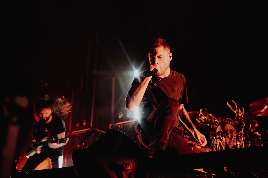 Také Lorna Shore jsem měl již možnost vidět na Brutal Assaultu, ale tenkrát má očekávání kvůli zvuku, oproti perfektním nahrávkám, úplně nenaplnili. Když pódium zakryla obří plachta s logem kapely, byl jsem opravdu zvědavý, co bude. Lorna Shore totiž mezitím intenzivní koncertní činností po Pain Remains a s kritikou nadšeně přijatým albem I Feel the Everblack Festering within Me celkem vyrostla. Její symfonický atmosférický blackened deathcore si získal zástupy příznivců a někdejší křesťanskou metalcore partu z New Jersey by v LS asi nikdo nepoznal. Pro všechny zábavný moment se odehrál těsně před startem show, když produkce do sálu pustila cajdák Total Eclipse of the Heart a lidé začali svítit mobily. Bonnie Tyler by se asi moc divila, co se stalo potom. Entrée jak bejk, opona padá a se skladbou Oblivion začíná na další hodinu a půl pracovat buldozer s atributy tanku. Ze stage se do prostoru valí oheň z desítky plamenometů, na šesti projekčních plátnech se rozlétávají střepy, jiskry, ohňové koule. Unbreakable! Jsme nezlomní a pětice vedená Willem Ramosem s na stranu spletenými růžovými dready suverénně kraluje zcela zaplněnému prostoru.
