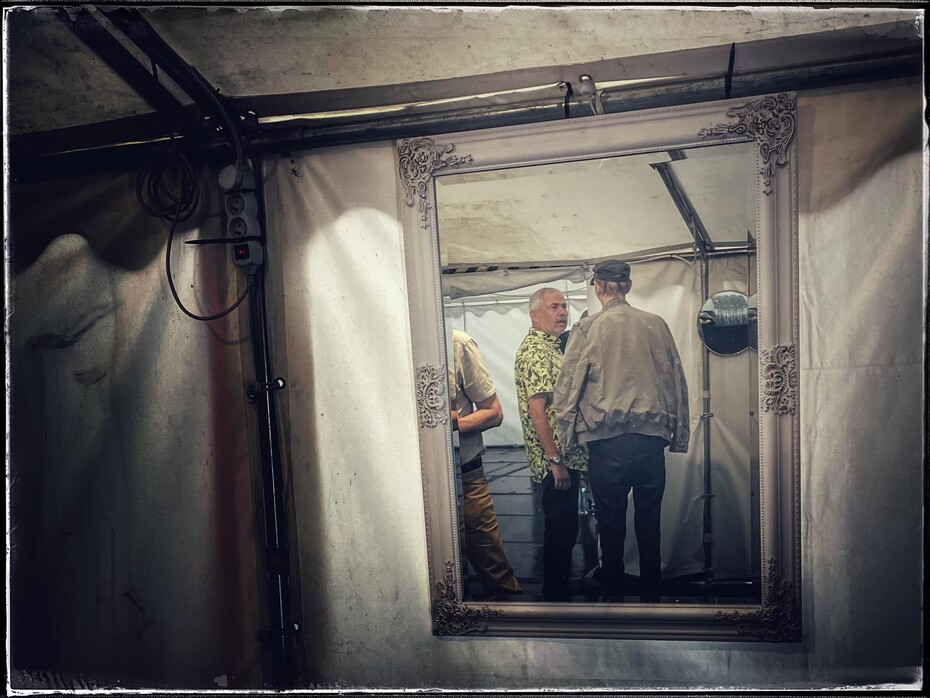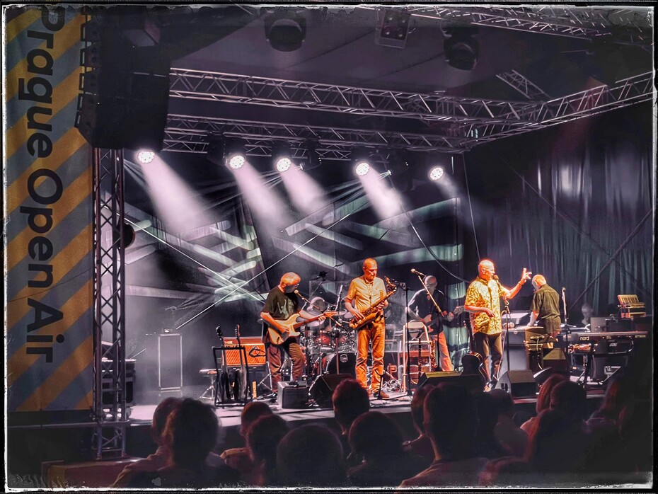 Koncert odstartoval velmi příhodně znělkou známého pořadu Na plovárně, jehož je Marek Eben moderátorem. Když jsem se rozhlédla po plném stanu, kde byste jen těžko hledali prázdná místa k sezení, všimla jsem si, že věkový průměr publika už překročil důchodovou hranici. Jak říkal Marek Eben, většina jejich fanoušků už jezdí MHD zadarmo. Nepřekvapilo mě to, když jsem se ptala svých vrstevníků třicátníků, zda se mnou chce jít někdo na jejich koncert, nikdo se nehlásil. Jejich smůla. Protože tahle kapela vás vtáhne, ať už jste posluchač jakéhokoliv hudebního stylu a v jakémkoliv věku. Je to totiž pestrá paleta žánrů, inteligentních a zároveň humorných textů a úžasná přehlídka muzikantského umu. To vše pojí dokonale vypointované historky Marka Ebena.