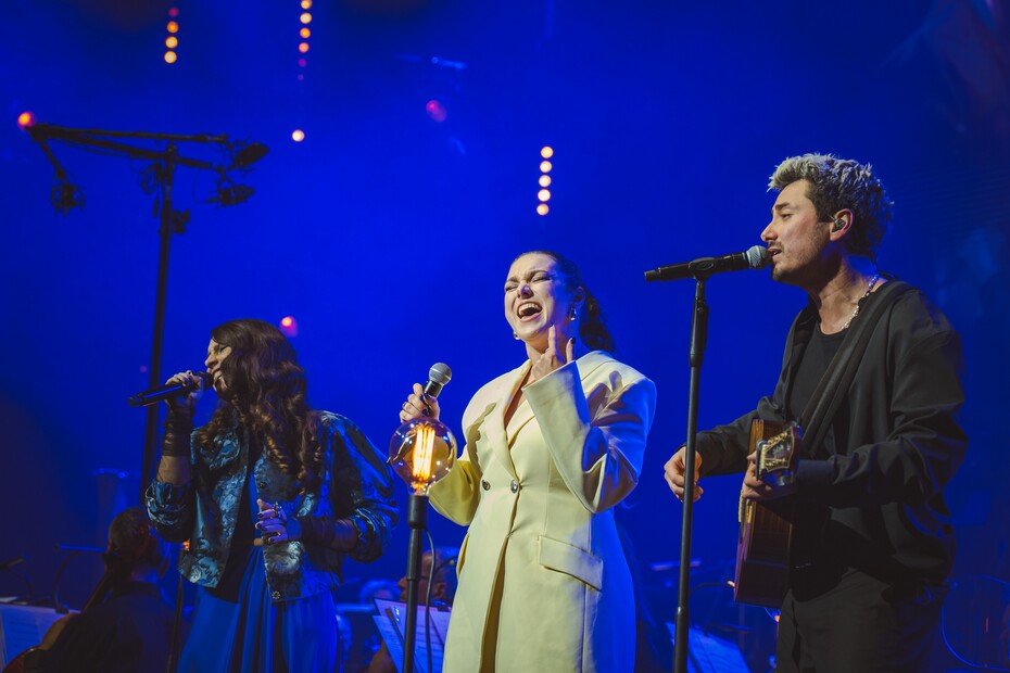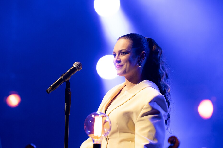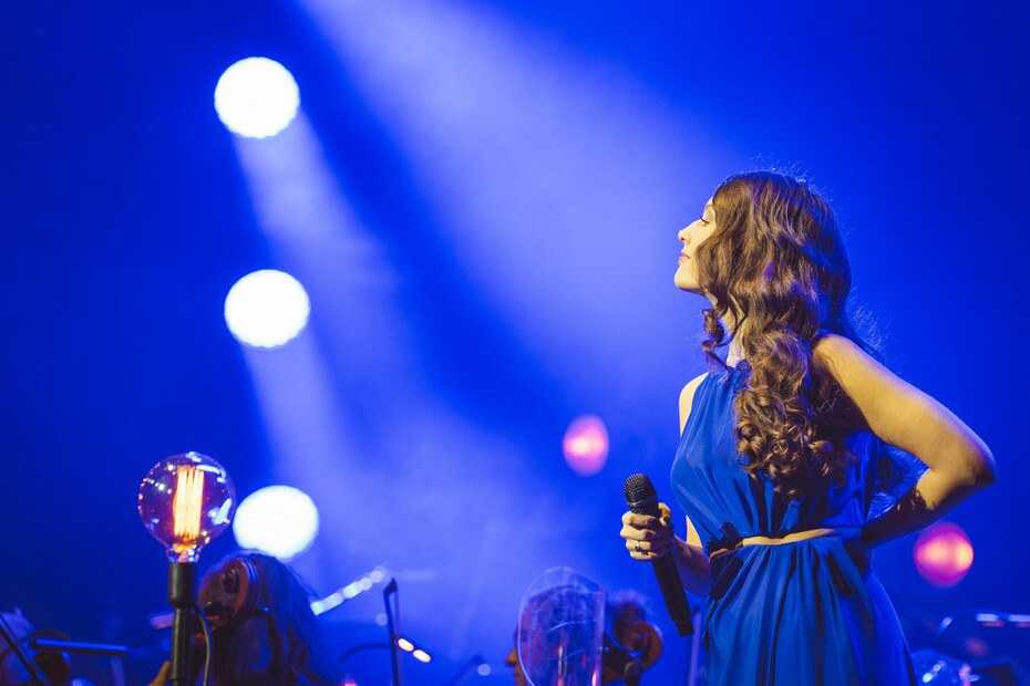 Od Kateřiny by se nabízela Čaruj z první desky s Bandjeez, kterou zpěvačka s kapelou často připomíná i na svých koncertech, a která byla v orchestrální verzi naprosto famózní. Ale! Sklaba Tvoje oči v přednesu Kateřiny včera opravdu vyčnívala. Dlouhé smyčcové party střídaly pizzicata, postupně se přidávaly dechy a tu a tam probublávala harfa. Nástroje se postupně krásně vrstvily a gradovaly, až se z úplného vrcholu propadly do ticha. Krátká báseň, která ale ze své nenápadnosti vplula mezi velmi výrazné body večera.