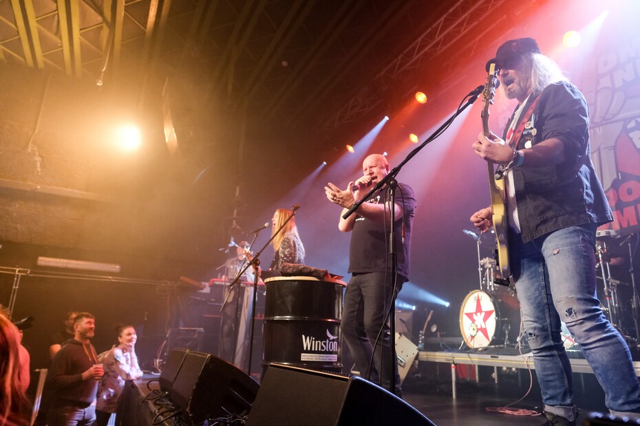 Následující dvojice skladeb, Beke Dance a Čenon jede v kajaku z nového alba, zapadla mezi staré pecky tak přirozeně, jako by tam patřily odjakživa. Publikum jelo refrény sborově, bez zaváhání. Tak jak to začalo, tak to také pokračovalo. Kapela s chutí a razancí sázela do publika skladbu za skladbou, jako by se psala devadesátá léta, přičemž časem prověřené pecky střídaly ty z nového alba. Fléda se proměnila v prostor nabitý syrovou energií. Bicí hnaly vše vpřed, dvě basy tlačily vzduch před pódiem, kytary řezaly a nad tím se nesly melodické linky kláves, charismatické vokály a typicky rýpavé, místy vyloženě ujeté texty. Publikum zpívalo, tleskalo, tančilo, nebo alespoň podupávalo do rytmu. Zkrátka dělalo přesně to, co se na bigbítovém koncertě dělat má. Když se program chýlil ke konci a z pódia začala znít úvodní kytara kultovní skladby Pražskej démon, Růžiek pronesl, že jde na pivo. Sice z pódia neodešel, ale klidně mohl, protože publikum celý text odzpívalo samo.