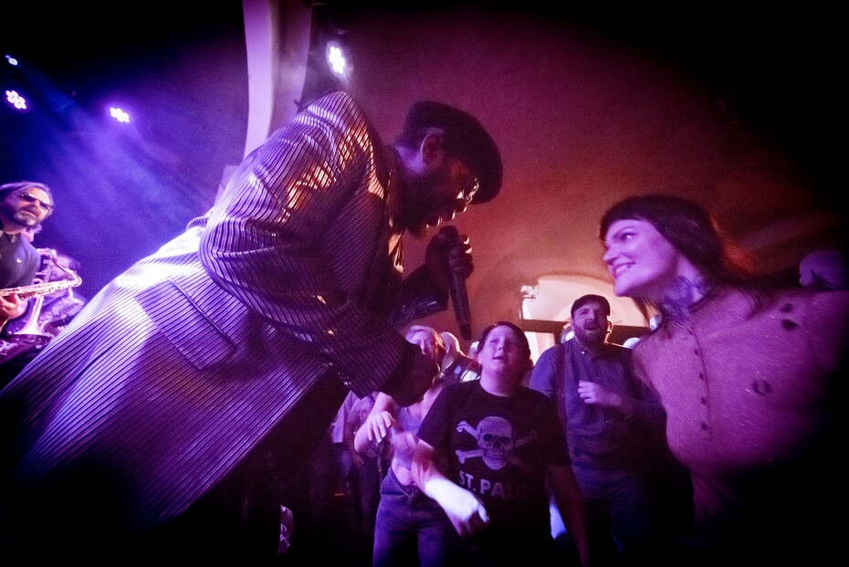 Mr. Symarip je nejen zpěvák, ale i bavič, který dovede pracovat s publikem do nejmenších detailů. Nejprve nechal nechal kapelu zahrát několik šťavnatých instrumentálek projektu Boss Foundation britského producenta Neila Andersona, než se laskavě dostavil na scénu v předklonu a v lesklém obleku. Díky němu připomínal víc nějaké megabroukovité stvoření z obrazů pro Vetřelce od H.R. Giegera než stařičkého černocha původem z Kingstonu.