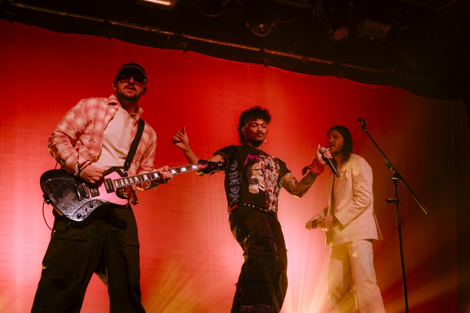 Už u vchodu leželo pár stylových krabic na pizzu potištěných grafikou alba; to jsem ještě netušil, kolik jich bude k vidění později. Pódium bylo oproti běžnému stavu zvýšené ještě malou nadstavbou, díky které bylo na vystupující lépe vidět. Ústřední dvojici Marcel Procházka a Ondřej Fiedler doprovodil jako obvykle i bubeník, tentokrát za bicí usedl Adam Koš. Ten se toho vůbec nebál praštit a dodal repertoáru oproti studiovým verzím daleko tvrdší, rockovější nádech. Marcell občas vzal do ruky i akustickou kytaru, hlavně ale zpíval a celý koncert poctivě odtáhnul svým frontmanským charismatem. Nemluvný fiedlerski střídal elektrickou kytaru a baskytaru, ale bohužel se v průběhu celého koncertu potýkal s technickými problémy a jeho kytarové party mnohdy nebyly slyšet, ať už to bylo způsobené právě zrádnou technikou nebo se zrovna ztrácely za obzvlášť hlasitými činely.