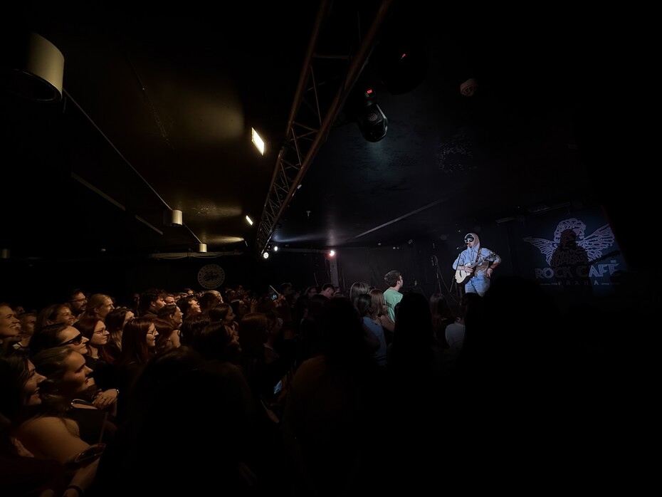 Když si na jednu ze svých nejstarších skladeb Kyslík Slavíček na pódium přinesl stoličku, Rock Café už bylo tak plné, že lidé v zadních řadách si změny prakticky ani nemuseli všimnout. V sedě pokračoval i s písní Žíly, při které publikum pro změnu rozsvítilo své telefony a úzké podzemní prostory Rock Café se rázem rozzářily. To, že měl během koncertu sám Slavíček drobné hlasové výpadky a přeskakoval mu hlas, nikdo neřešil.