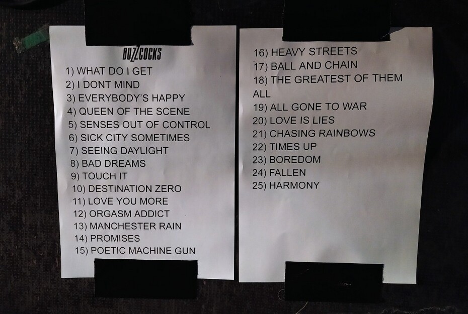 Zvuk se sice prvních pár skladeb hledal a pod pódiem nebyl zrovna křišťálový, ale postupně se zlepšil. Při šesté Sick City Sometimes nastal totální hudební i divácký mayhem. Je fascinující, jak tahle věc z „plonkového“ období kapely živě funguje. A to i díky skvělému bubnování Dannyho Farranta. Z jiného než tradičního soudku Buzzcocks byla i hypnotická Why Can’t I Touch It?. Groovy rytmika a dominantní bicí posunuly zvuk kapely někam k Public Image Ltd. Diggleovo kytarové sólo v téhle poloze bylo navíc skvělé.