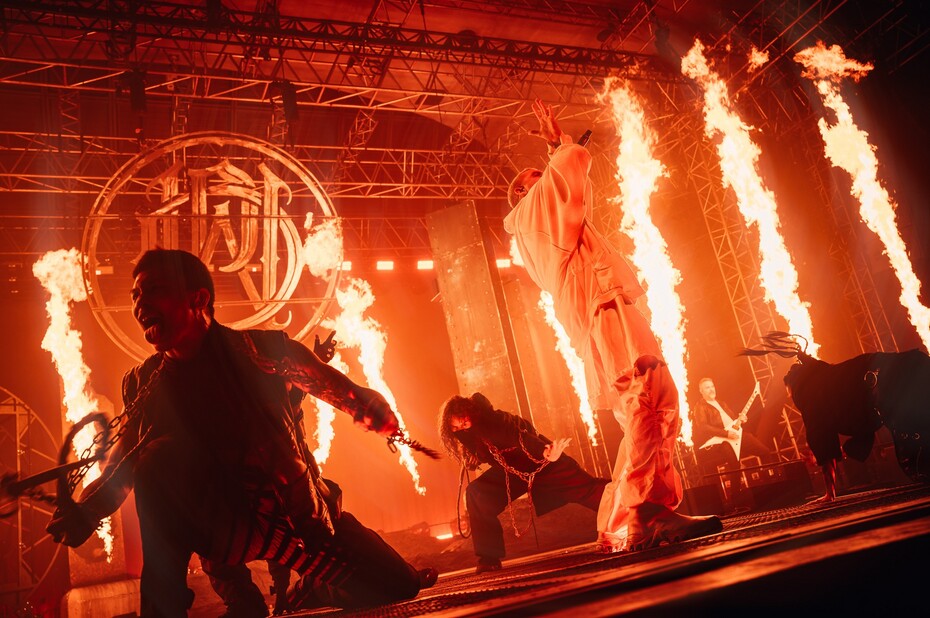 Ještě před začátkem bylo jasné, že tahle zastávka turné bude skromnější než ta podzimní. Sám jsem viděl zářijovou show ve Vídni, takže se srovnání nabízelo. Parkway Drive ale ukázali, že i s menší produkcí dokážou postavit show, která nepůsobí osekaně. Scéna si udržela svou typickou mohutnost, nechyběla smyčcová sekce, taneční doprovod ani oheň, jen v menší míře. Z velké konstrukce zůstaly spíš náznaky a most do publika nahradilo kratší molo. I ikonický „dešťový moment“ tentokrát zůstal jen ve zvuku.