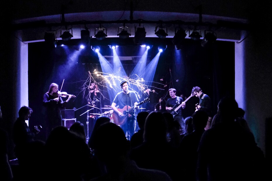 Wóďovu tvorbu znám dobře. Jeho osobitá městská poetika, načichlá Malou Stranou, ale i punkovým étosem, je věc, kterou člověk buď miluje, nebo ho mine. Sólo či v duu s houslistkou Terezou Stejskalovou jsem ho slyšel několikrát, a byly to intimní, syrové a autentické momenty. Tentokrát ale přišlo něco jiného.