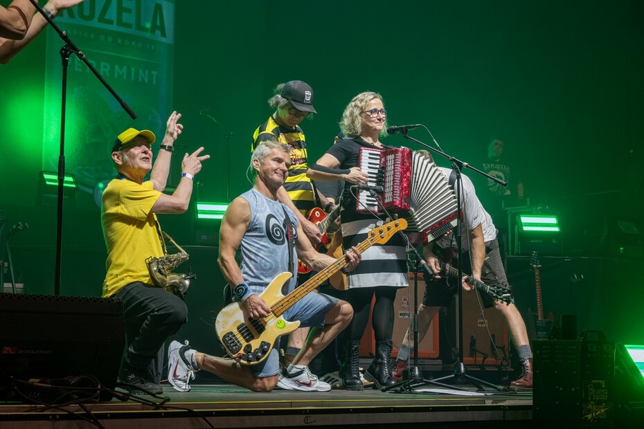 Kapela nabídla ve svém vystoupení i několik hostů – Aidu si s nimi zazpívala Bára Špotáková a v několika starších písních se ke kapele přidali dva „otcové zakladatelé“, kteří dnes žijí v cizině. Přínos to nemělo žádný, jen jako zpestření. Nechyběl Sahulův koutek (Šetři se, chlapče a Sovy v mazutu). Stálí návštěvníci uvítali málo hrané Nuselský Horky a výtečně se vydařil předpřídavkový závěr v podobě písni Mexiko, Život je takovej a Kovárna. To byla série, která uvedla publikum do transu, v němž nikomu ani nevadilo, že kytarová sóla Kapitána Korkorána byla proti zbytku party příliš potichu.