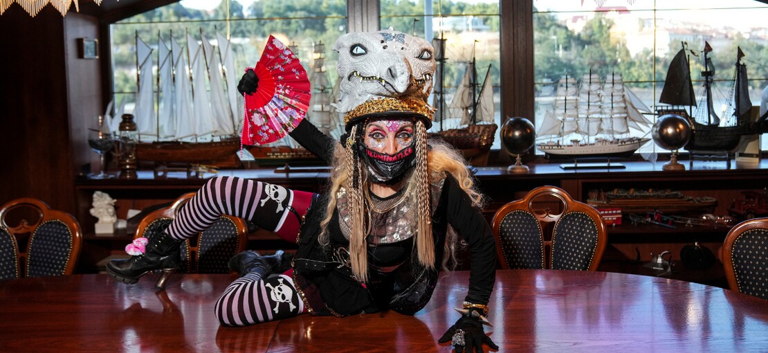 „Ty vůle, lodě!“ výskne Jana Uriel Kratochvílová, hned co rozrazí dveře salonku. Dovnitř se vřítí dva její malí psi a začnou se stejným nadšením očuchávat každý milimetr místnosti. Jejím příchodem jako by se něco změnilo. I když děláme „jenom“ audio rozhovor, je oblečená na velkou show. Extravagantní kostým, na hlavě se jí točí klobouk z hada, na obličeji třpytky, uprostřed čela stříbrné srdce, přes pusu rouška s modrým motýlem. Pod síťovaným trikem prosvítá podprsenka, ale ruce až po konečky prstů halí dlouhé rukávy a černé rukavice. Mikina má na sobě motiv God save the Queen od Sex Pistols. K tomu barevný cop vpletený do vlasů a spousta šperků. Nestačím se ani pořádně rozhlédnout – a i George má na hlavě rohy.