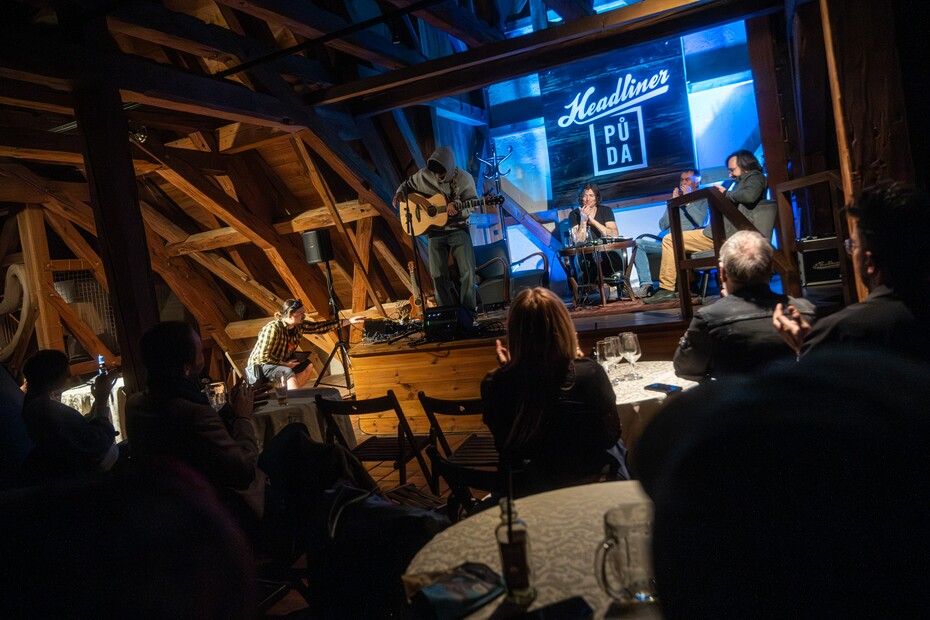 Headliner Půda s pořadovým číslem 7 se konala 13. října v Malostranské besedě. Jde o setkání lidí od muziky s lidmi do muziky, tentokrát o tom, jak hudebníci hledají cestu mezi světy tradičních médií, streamovacích platforem a sociálních sítí. Z druhé části večera vám nabídneme záznam brzy.